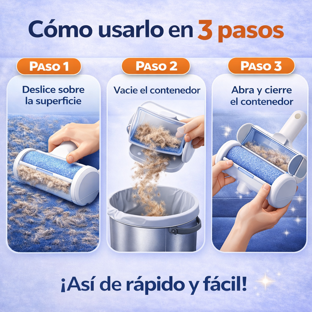 Funciona perfectamente en sofás, alfombras, mantas, camas, ropa y asientos del coche, eliminando el pelo de mascotas de forma rápida y eficaz.